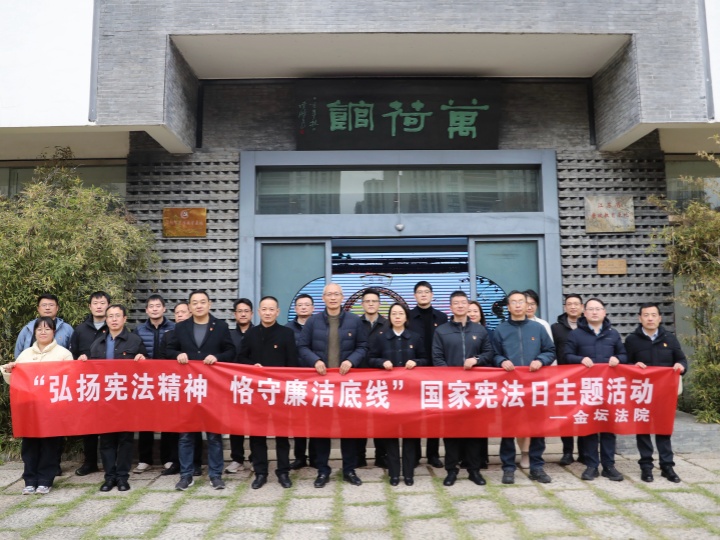 12月4日,第十二个国家宪法日如期而至。金坛法院以“弘扬宪法精神,恪守廉洁底线”为主题,组织院领导班子成员及各部门负责同志齐聚钟楼区万荷园廉政文化教育基地,召开国家宪法日主题活动暨党组理论中心组(扩大)学习会,通过实地沉浸式教育与集中专题学习相结合的方式,推动宪法精神入脑入心,筑牢忠诚履职、司法为民、廉洁奉公的思想根基。