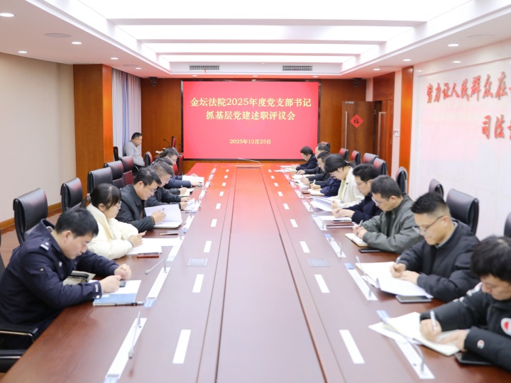 为深入学习贯彻党的二十大及历次全会精神,严格落实新时代党的建设总要求,12月25日,金坛法院召开2025年度党支部书记抓基层党建述职评议会,全面检验各党支部书记履行“第一责任人”职责情况,交流经验、查找不足、明确方向,推动法院基层党建工作全面进步、全面过硬,为法院工作高质量发展提供坚强政治保证。院党组成员、政治部主任、机关党委书记吴懿主持会议并讲话。