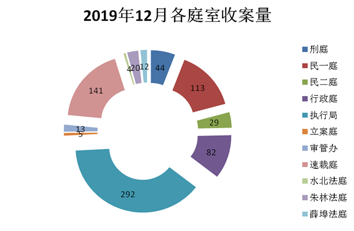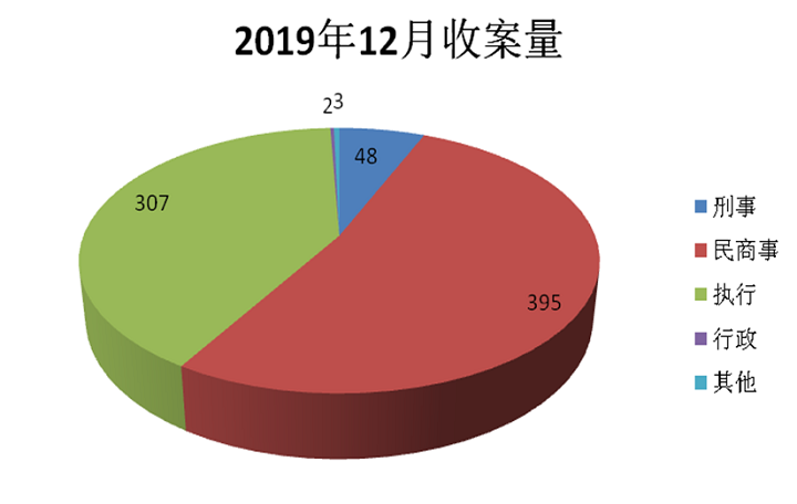 2019年12月收案59件,占全院民商事案件18.32%;当月结案213件,占全院民商事案件22.42%。