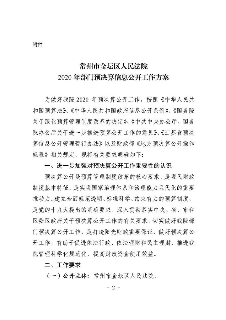 常州市金坛区人民法院2020年部门预决算信息公开工作方案