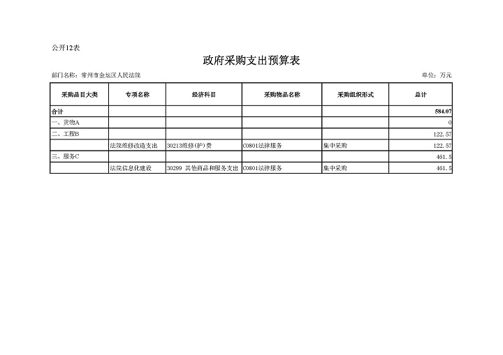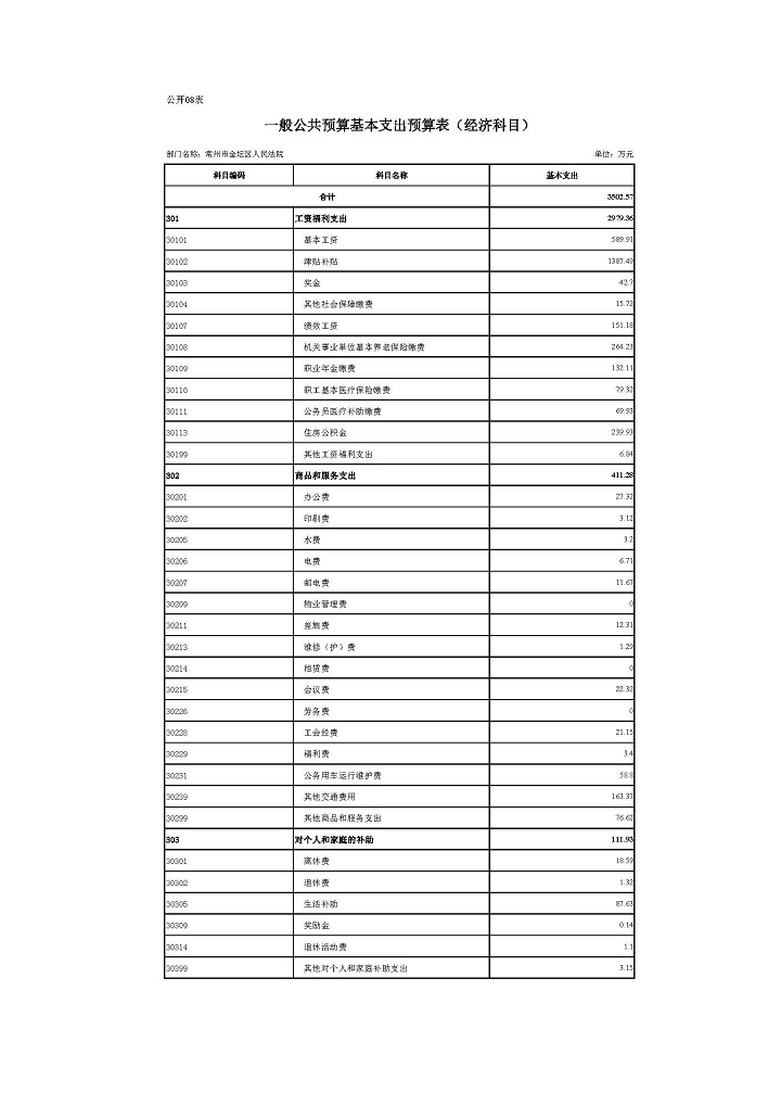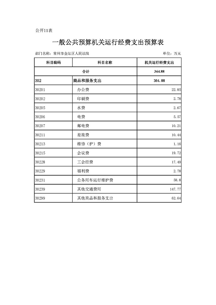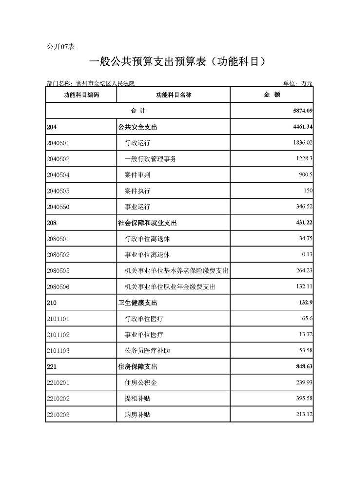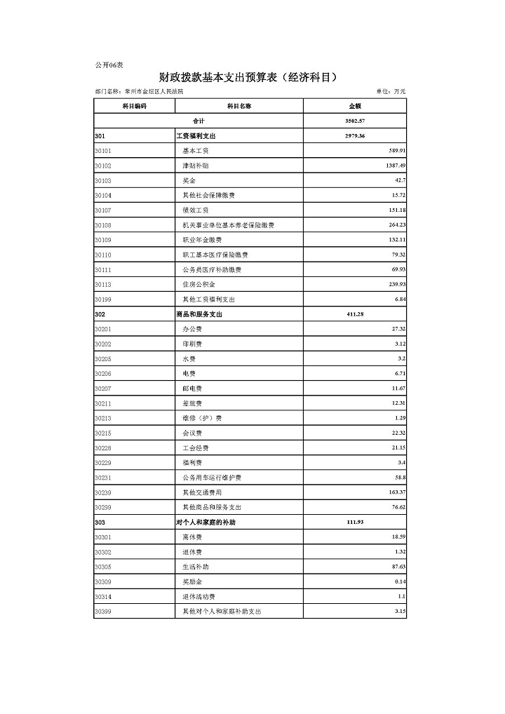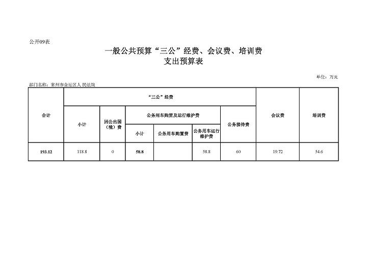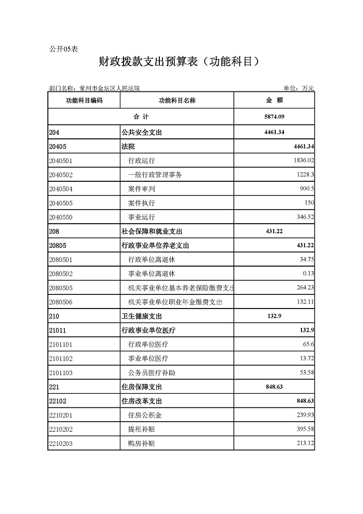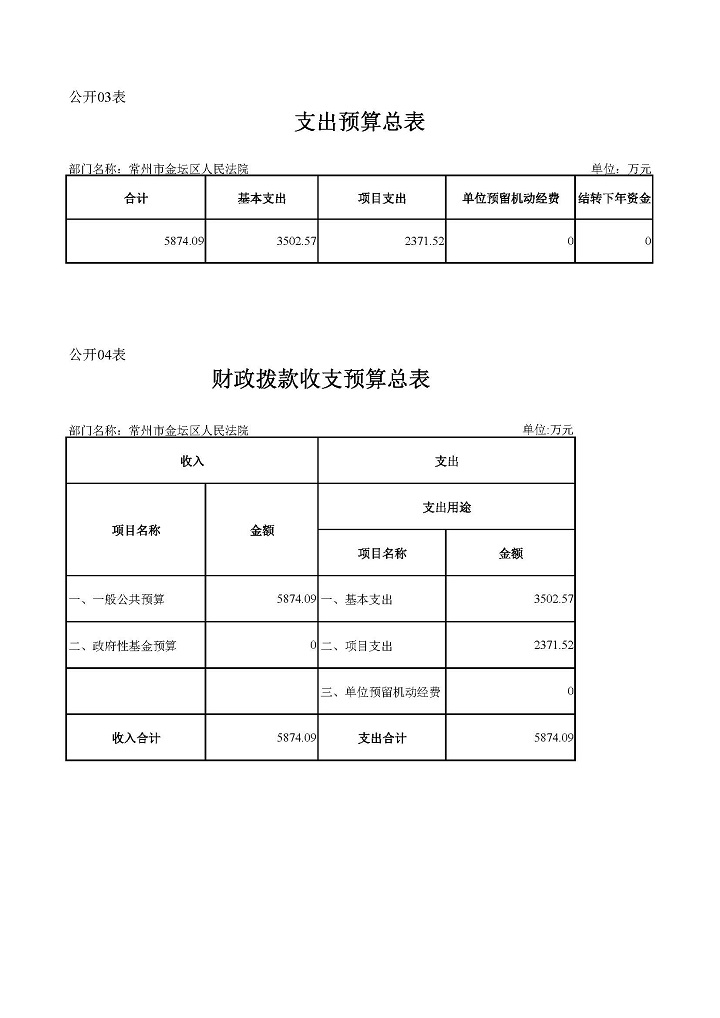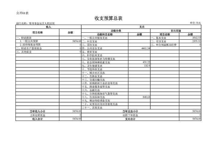 常州市金坛区人民法院2020年部门预算公开表