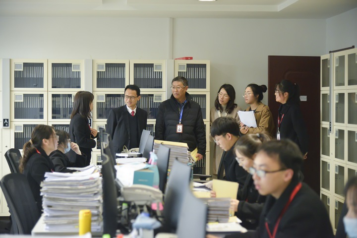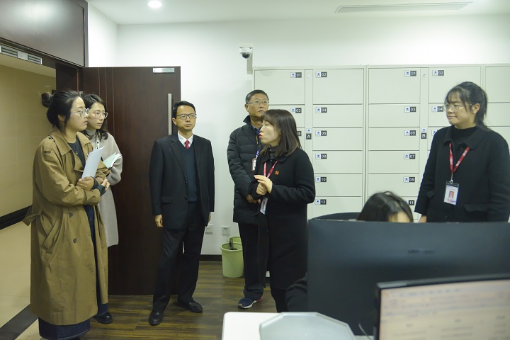 2021年3月17日,湖州南太湖新区人民法院党组成员、副院长、政治部主任翁旭鸣一行至金坛法院调研司法辅助事务外包工作,金坛法院立案庭庭长贺献忠陪同参观。