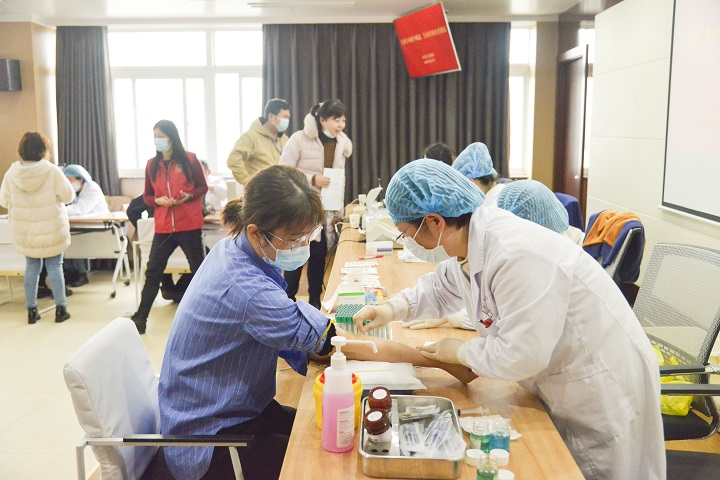 我院干警在医护工作人员的引导下,有序填表、化验、等候、采血,准备工作有条不紊。