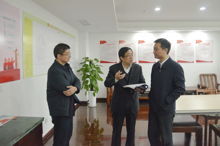 2021年3月19日,区委常委、政法委书记孟敖祥至金坛法院视察队伍教育整顿工作,院党组书记、院长于立峰、院党组成员、政治部主任吴懿、办公室主任张照鹏陪同视察。