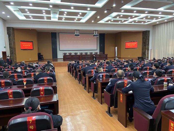 2021年3月24日,金坛法院开展队伍教育整顿警示教育庭审观摩活动。金坛区委常委、政法委书记孟敖祥,副区长、区公安局局长沈振华,区法院院长于立峰,区检察院检察长仲军,区司法局局长何云华出席活动,全区政法队伍干警代表140余人参加此次活动。