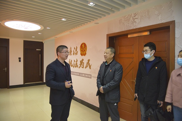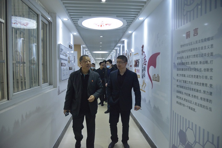 吴懿主任详细介绍了我院“体验式”党史教育文化长廊建设的目的意义、具体布局和特色做法。同时,吴懿主任还介绍了我院队伍教育整顿开展情况,表达了“开门整顿”的诚恳态度,邀请企业对法院工作多提宝贵意见。