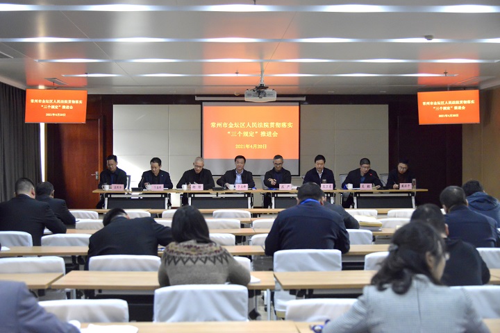 4月20日,金坛法院召开贯彻落实“三个规定”推进会,对“六大顽瘴痼疾”专项整治中涉及到的“三个规定”工作进行再部署、再推进。院党组书记、院长于立峰出席会议并讲话。