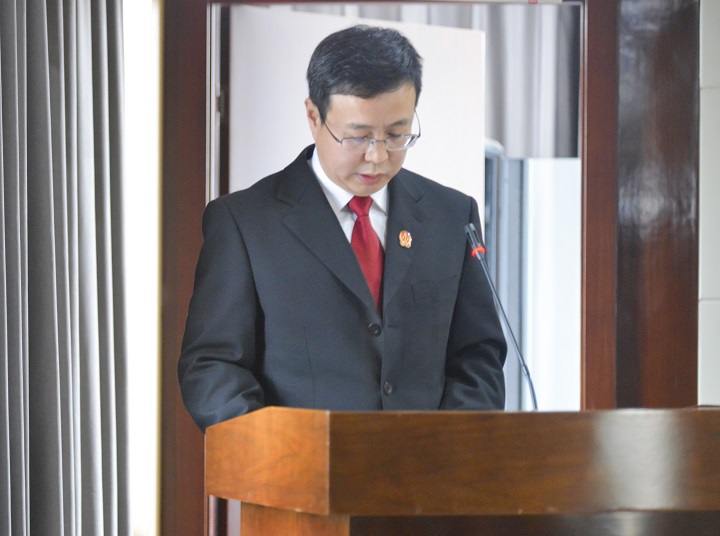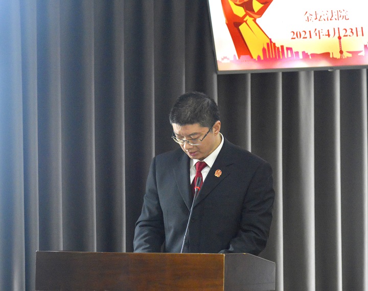 院党组成员、政治部主任吴懿在成立仪式上解读金坛法院“守初心·担使命”青年干警联盟成立的初衷、盟员培养形式等。