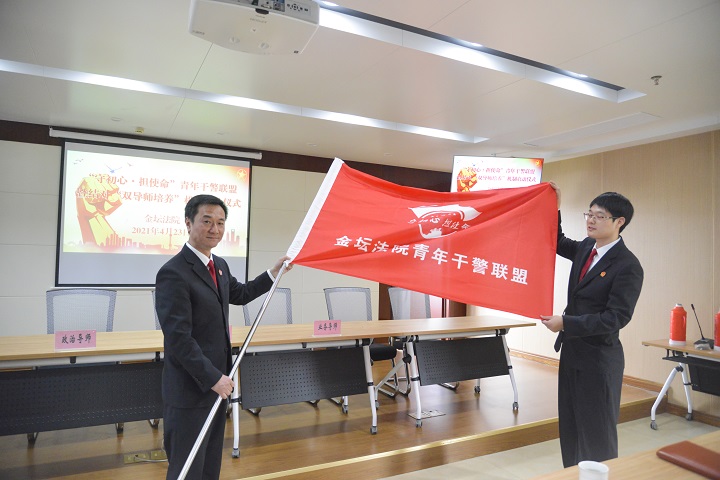 4月23日,五四青年节前夕,金坛法院青年干警齐聚一堂,启动“守初心·担使命”青年干警联盟成立仪式,推行“双导师”培养制,探索青年干警成长“导航”新模式。院党组书记、院长于立峰出席仪式进行授旗并讲话。