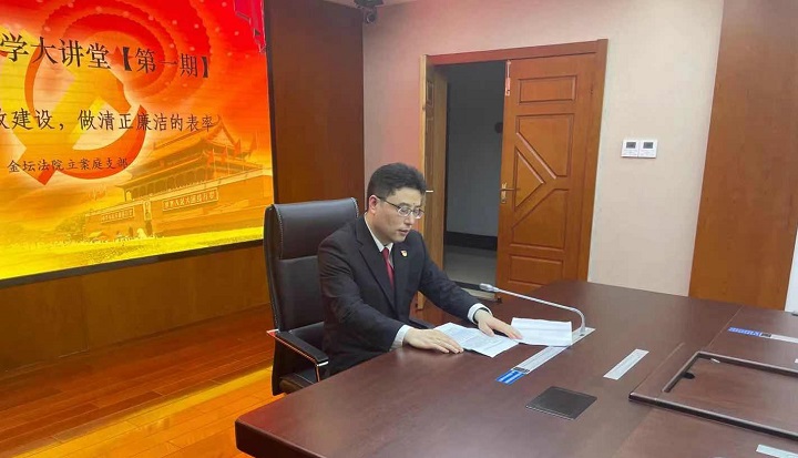 金坛法院广大干警主动契合党史学习教育与队伍教育整顿,自发组织开设线上直播课堂,推进学习型队伍、文化型法院建设。2021年4月21日,金坛法院立案庭支部书记王建军通过企业微信直播,围绕《加强党风廉政建设 做清正廉洁的表率》,给全院干警讲授了一期精彩的微党课。