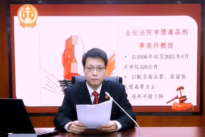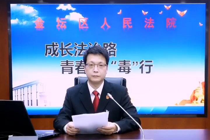 2021年5月19日晚7:30,金坛法院刑事审判庭员额法官汤震球通过企业微信直播为全院干警作题为《成长法治路 青春不“毒”行》的微党课。