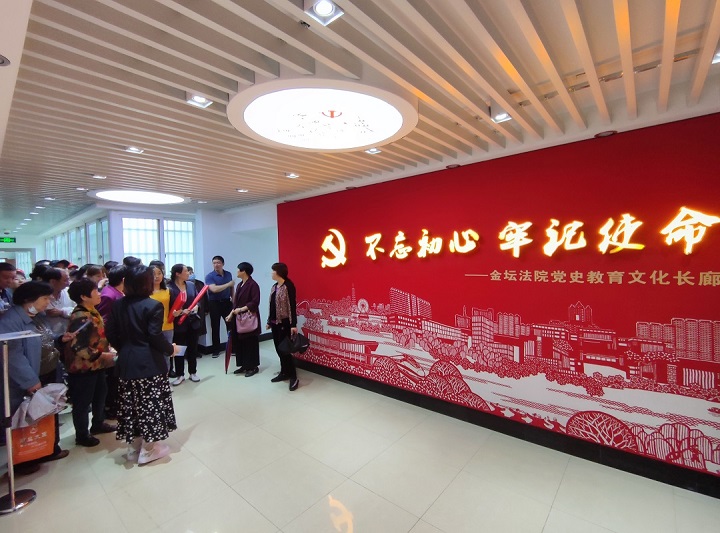 社区党员群众一行先后参观了金坛法院诉讼服务大厅、党史学习文化长廊、VR思政教育厅等特色文化阵地。通过参观,党员群众们对法院立案流程、案件审理、法院文化等有了初步了解。