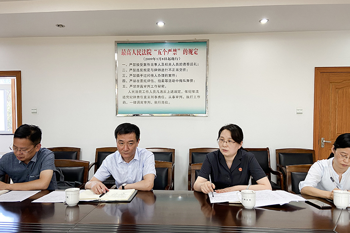 市中院党组成员、副院长潘桂林,行装处处长康林一行调研金坛法院朱林人民法庭,并召开专题调研座谈会。金坛法院党组书记、院长于立峰,院党组成员、审委会专职委员袁照华,朱林法庭庭长杨丽莉,副庭长钱蓉参加座谈。