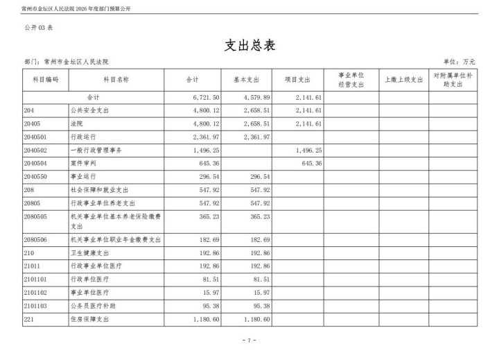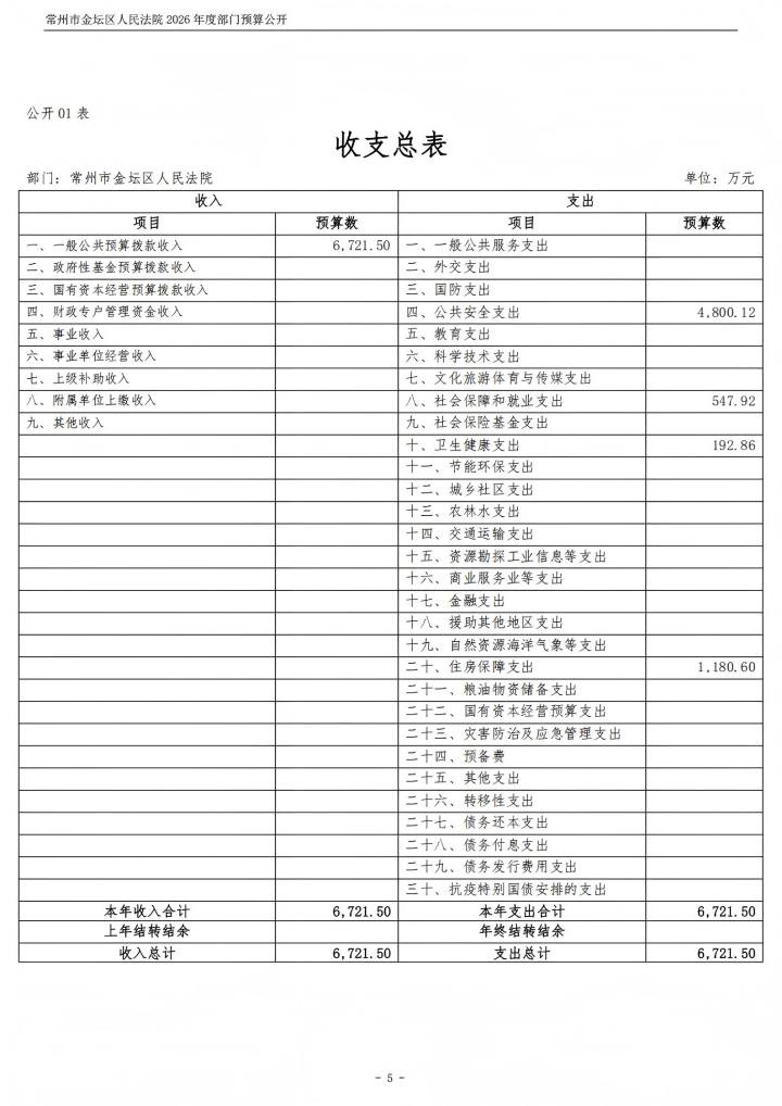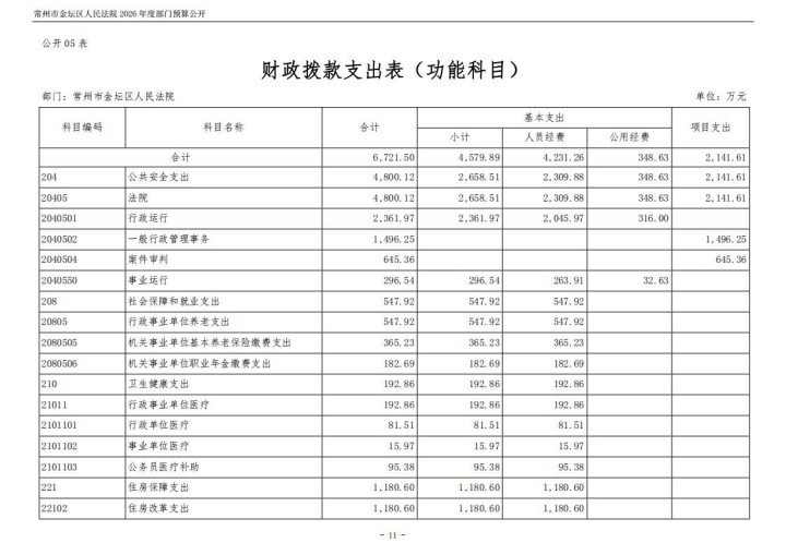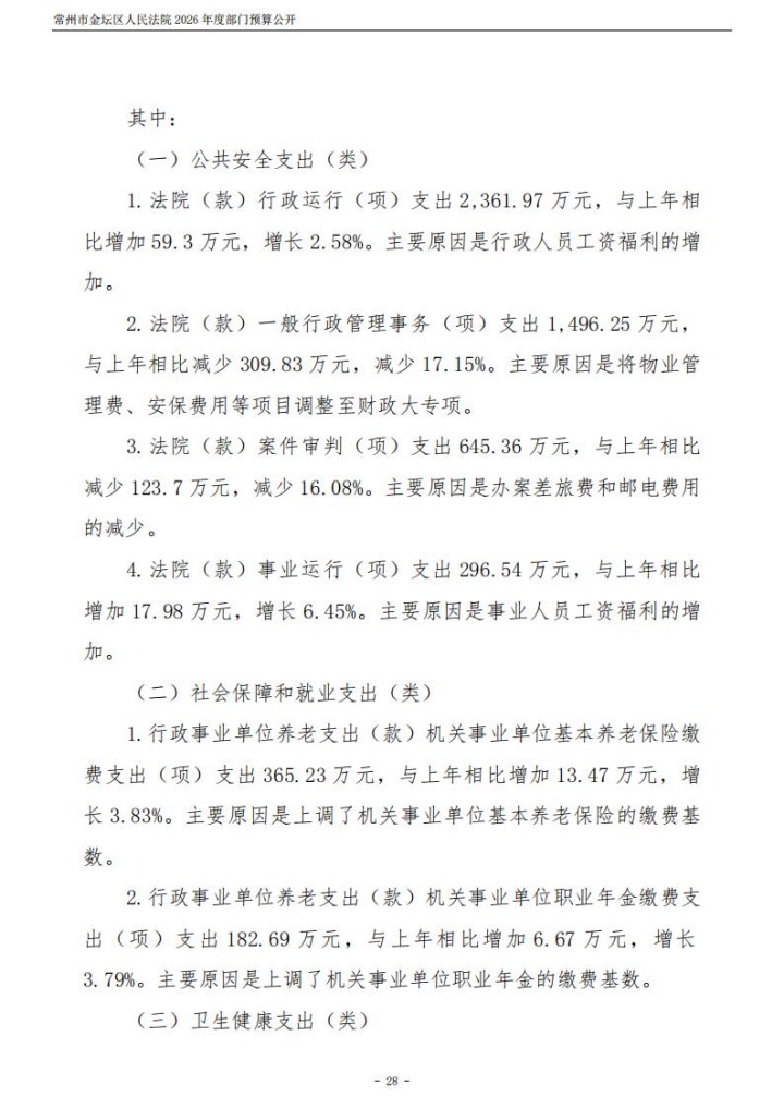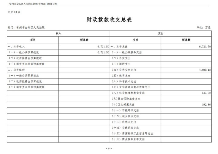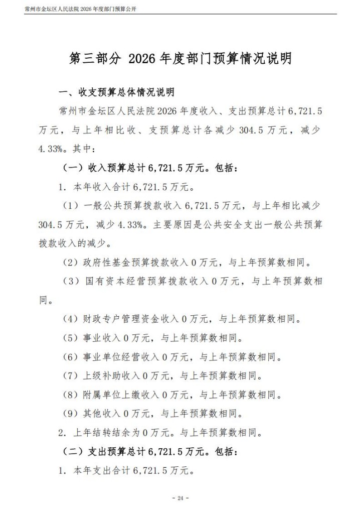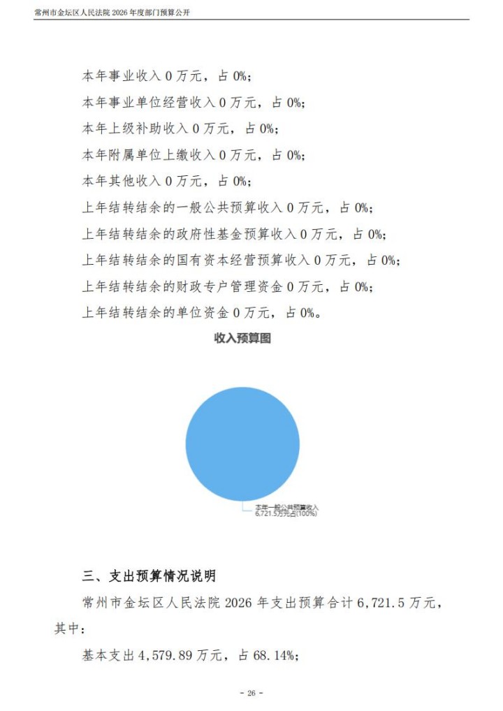 常州市金坛区人民法院2026年度部门预算公开