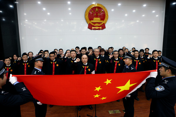 为进一步增强员额法官的职业使命感、责任感和荣誉感,打造一支正规化、专业化、职业化的审判队伍,2017年2月10日,金坛法院组织全院首批入额的41名法官举行了隆重的宣誓仪式。