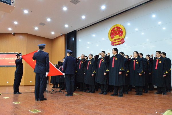 在宣誓仪式上,在院党组书记、院长宋文良同志的领誓下,全体员额法官庄严宣读法官誓词,作出公正司法、廉洁司法、为民司法的庄严承诺。