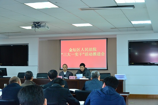 “三大一实干”活动是贯彻落实省、市、区党代会精神的有力抓手,也是深化“两学一做”学习教育的有效途径,金坛法院党组书记、院长宋文良希望全院干警以务实的态度迅速投身到“三大一实干”活动中去,将思想和行动统一到司法为民、实干为民之中去,为金坛区提供高效的司法保障。