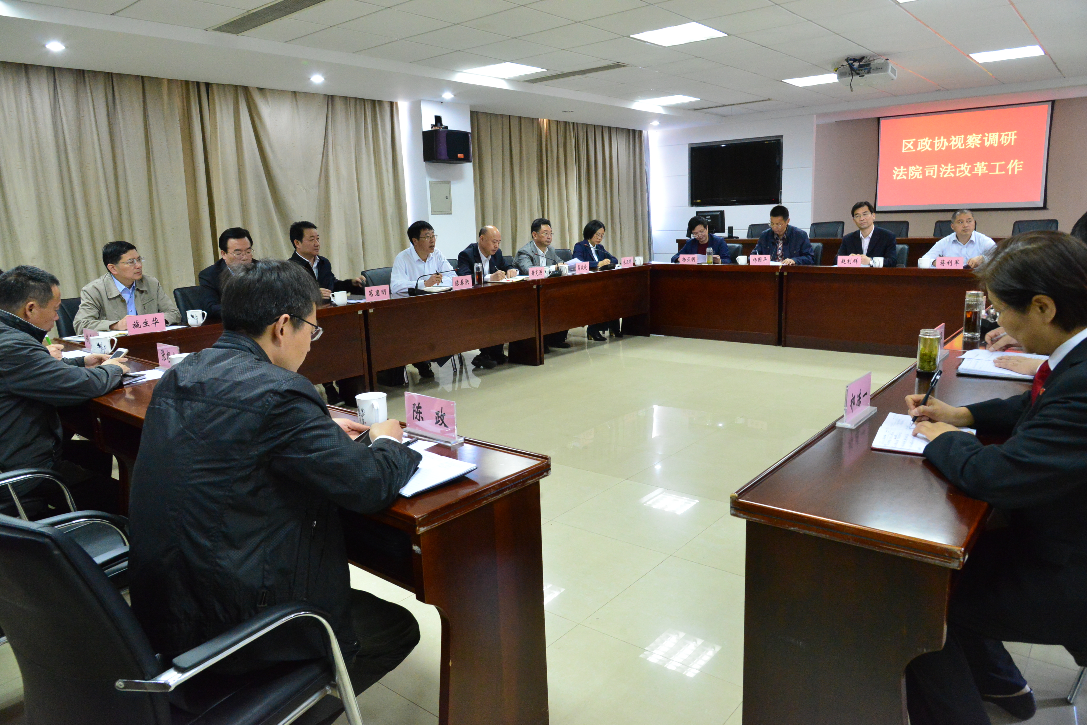 区政协党总书记陈春洪在听取汇报之后,对法院工作谈了三点体会:一是法院强化了团队建设,克服了案多人少等一系列矛盾,改革取得了很好的效果;二是依法独立审判,有效体现了“三个效果”,为全区经济社会发展保驾护航,公信力不断提升;三是改革有序推进,法院各项工作没有因改革而中断。