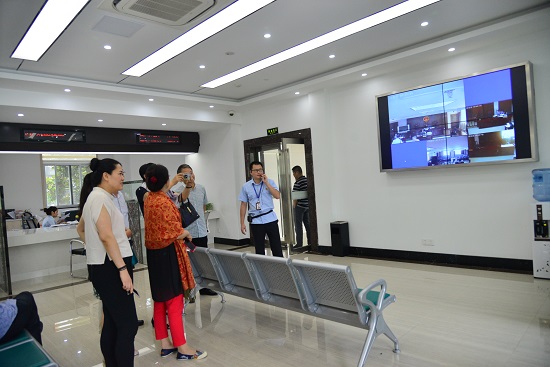 常州中院立案庭庭长陆军、副庭长刘晓琴及全市法院立案部门负责人参观了我院诉讼服务中心及薛埠法庭建设,并给予高度评价。