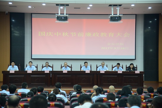 为深入贯彻中央八项规定精神,切实预防中秋、国庆期间各类“节日病”,金坛法院早谋划、早部署,9月28日召开国庆中秋节前廉政教育大会,引导全体干警不忘初心,努力营造风清气正的节日氛围,全院干警参加了会议。