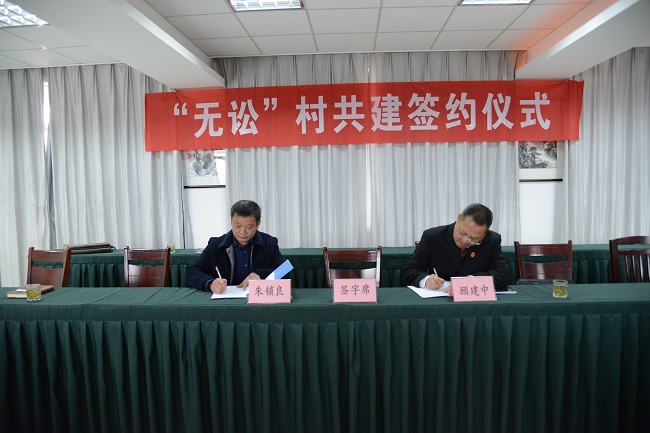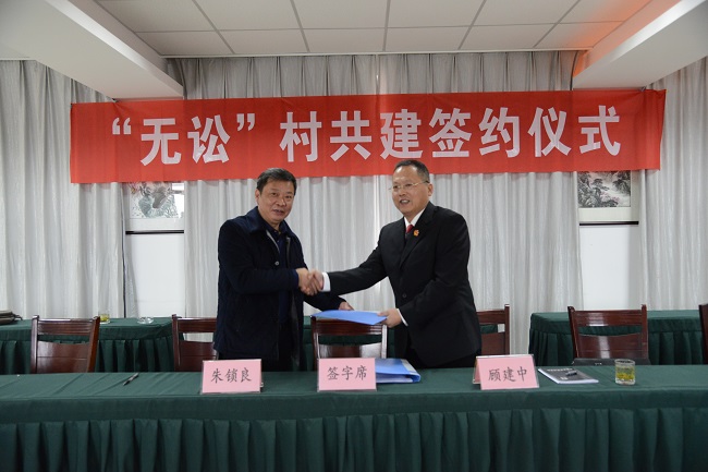 座谈结束后,顾庭长与朱书记共同签订了“无讼”村共建协议,并表示将严格按照共建协议的要求,不折不扣的完成各项工作,将纠纷化解在基层,继续推进诉调对接工作的开展。