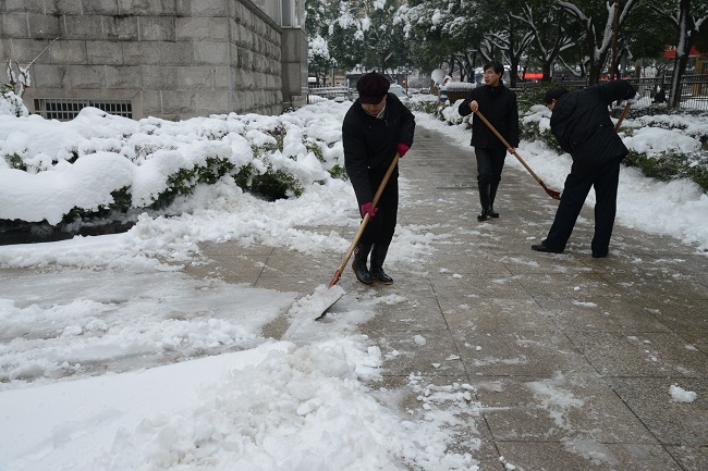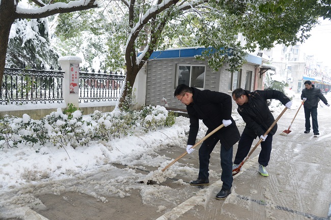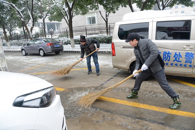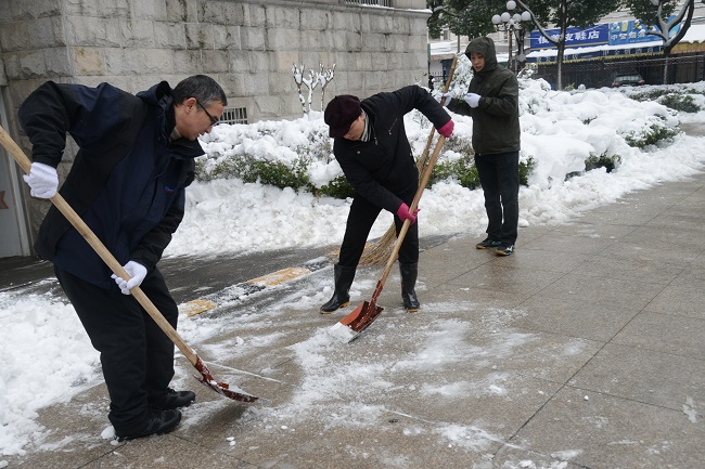 1月28日下午,宋文良院长带队四十余名干警加班加点奋战在扫雪除冰的第一线。“同志们,我们大家先把菜市场附近的积雪清扫干警”,宋文良院长心系群众,担心居民去买菜路滑不安全。