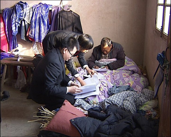 考虑到蒋某的特殊情况,立案庭决定派员上门立案。积雪尚未融化,路面依然湿滑,约30分钟的车程后,立案工作人员到达了蒋某家中,完成了这次上门立案工作。