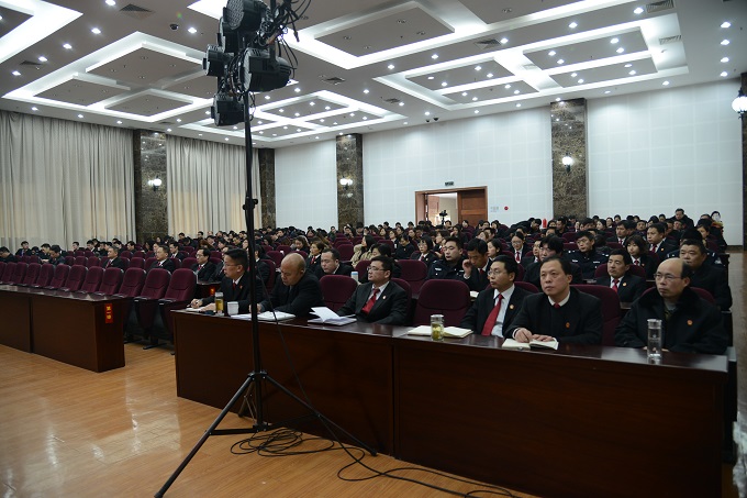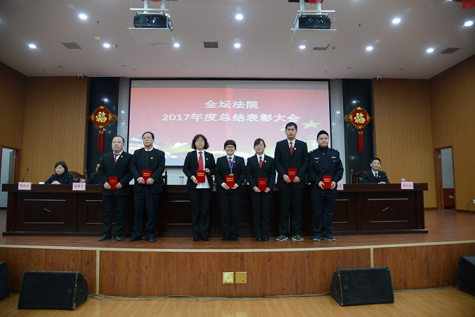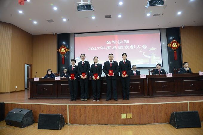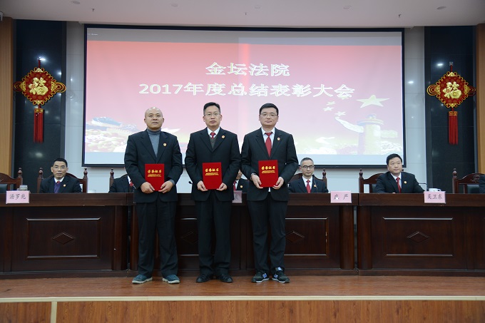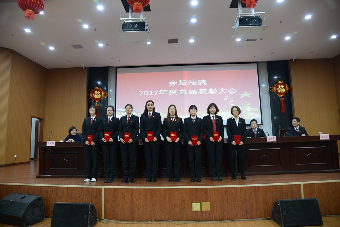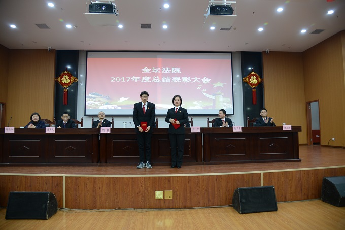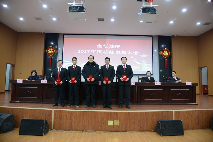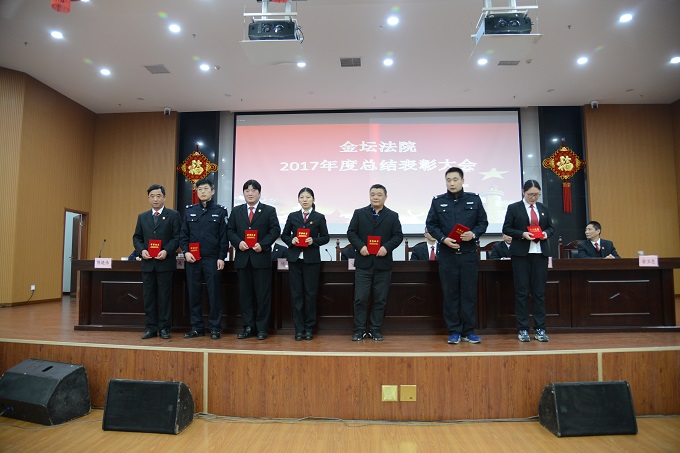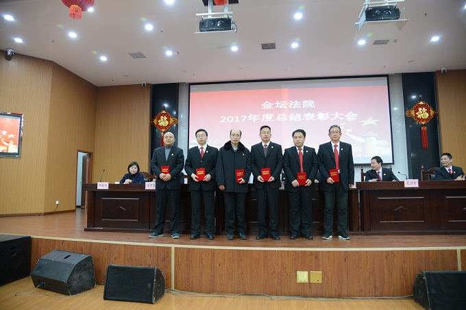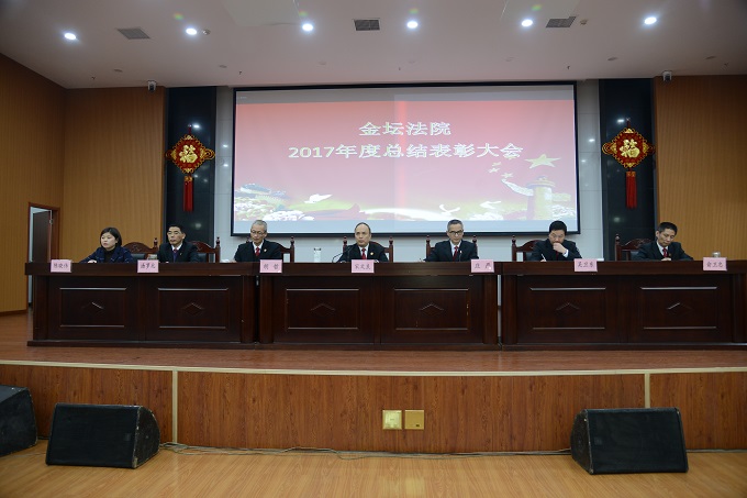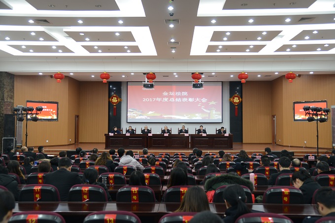 2018年2月11日下午,金坛法院在大法庭召开2017年度总结表彰大会,全院干警参加会议。
