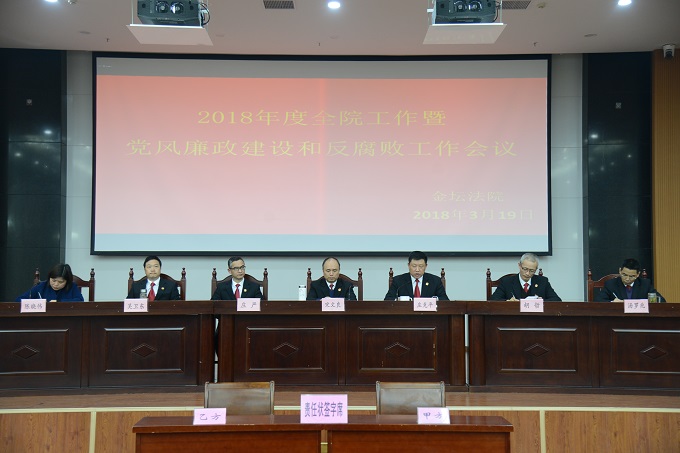 3月19日,金坛法院召开全院工作暨党风廉政建设和反腐败工作会议,会议由院党组副书记、副院长庄克平主持,全院干警参加会议。