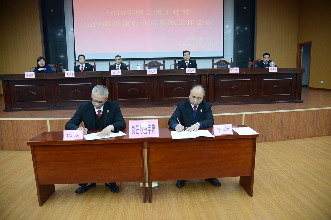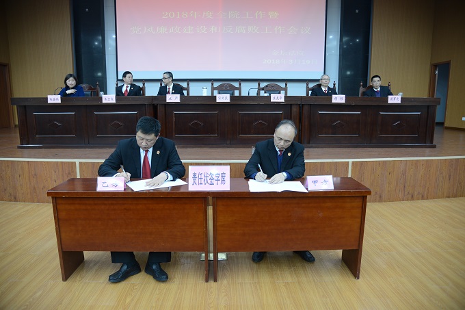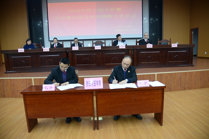 随后,我院按照落实党风责任制的有关要求精神,组织全院中层正职以上领导干部层层签订了党风廉政建设和反腐败工作责任状,强化责任意识,建立完善以一把手为主体的党风廉政建设和反腐败工作责任体系,党组中心组全体成员参加签字仪式。