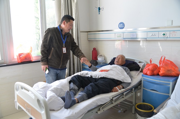 4月8日下午,金坛法院行政装备科科长傅勇进带着单位的慰问金和水果来到朱林镇卫生院看望患病住院的结对帮扶户曹大爷。
