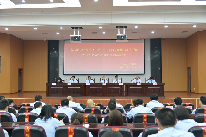 按照区委要求,5月25日下午,金坛法院召开“解放思想再出发、追赶超越勇向前”大讨论活动动员部署会,就大讨论活动的背景、意义、重点进行了安排部署,副院长庄克平主持会议,院长宋文良作重要讲话,全院干警参加会议。