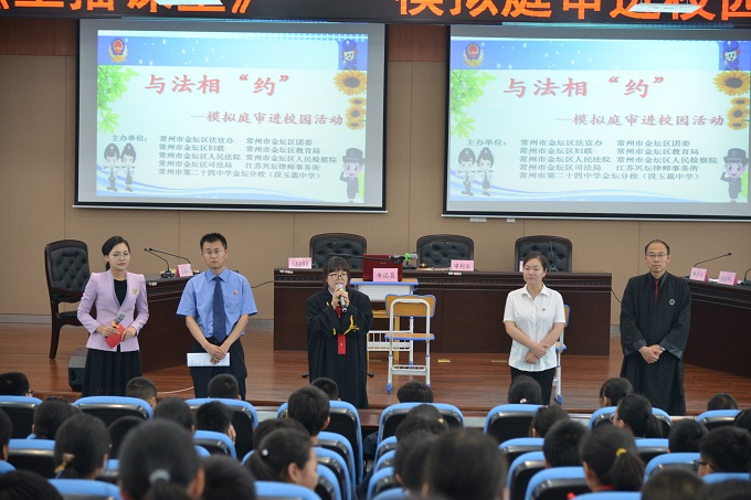 5月29日下午,金坛法院联合多家单位在区段玉裁中学模拟审理一起聚众斗殴案件并当庭宣判,该案件模拟庭审邀请了学校两百余名师生现场观摩,并在网络上进行了同步直播,反响热烈。