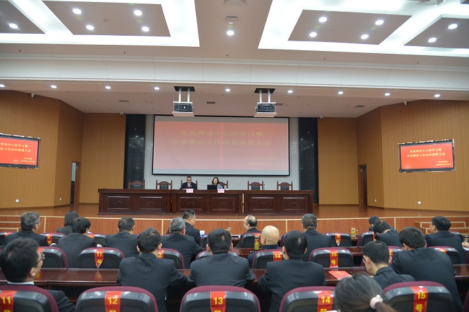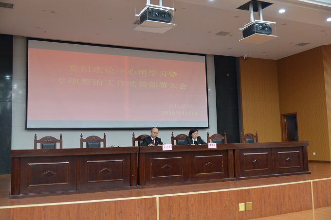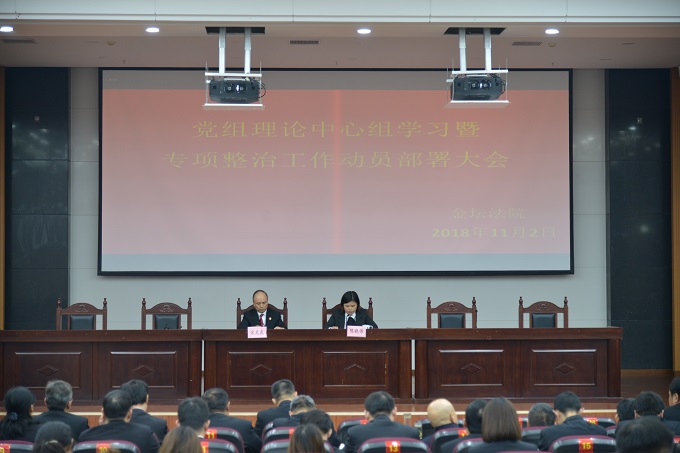 11月2日,金坛法院召开党组理论中心组学习暨专项整治工作动员部署大会,会议由庄严副院长主持,全院干警参加会议。