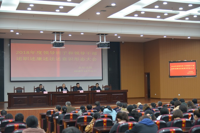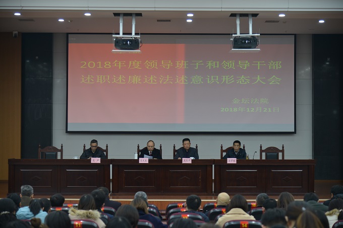 12月21日下午,金坛法院召开2018年度领导班子和领导干部述职述廉述法述意识形态会议,会议由党组副书记、副院长庄克平主持,全院干警参加。