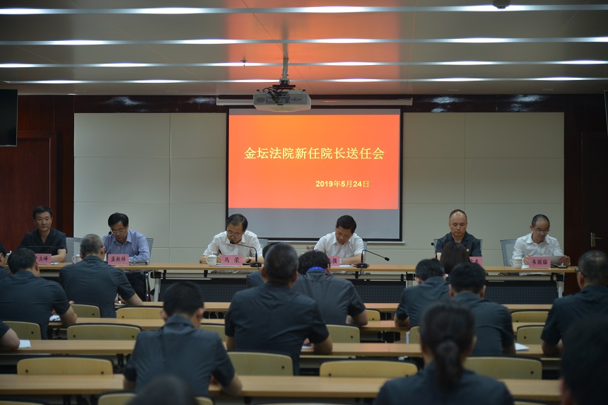 5月24日,金坛法院新任院长送任会顺利召开。常州中院党组书记、院长马荣,金坛区委书记狄志强,金坛区委常委、统战部部长、区政法委书记孟敖详,金坛法院原院长宋文良,金坛法院院长于立峰,金坛区委组织部副部长韦国猛等领导出席了本次活动。