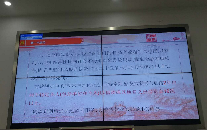 2019年10月21日,最高人民法院、最高人民检察院、公安部、司法部发布《关于办理非法放贷刑事案件若干问题的意见》(以下简称《意见》)正式施行。常州市金坛区人民法院积极响应,于10月22日即在诉讼服务中心和非诉讼服务中心设立专项警示展板,在诉讼服务中心外的滚动大屏幕以及诉讼服务中心内的电脑显示屏上循环播放《意见》内容,受到众多市民高度关注。