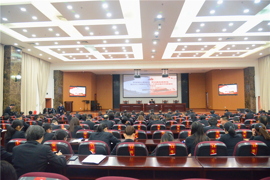 2019年11月1日下午,金坛法院召开全院党员干警大会,院党组书记、代院长于立峰发表题为《不忘初心勇担当 牢记使命铸荣光 努力让人民群众在每一个司法案件中感受到公平正义》的讲话,为全院干警辅导授课。