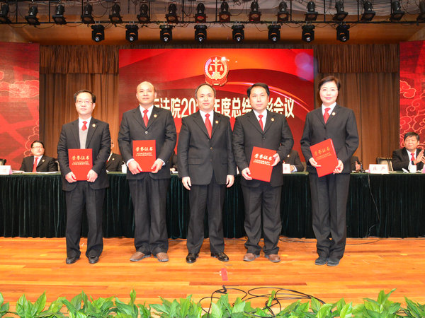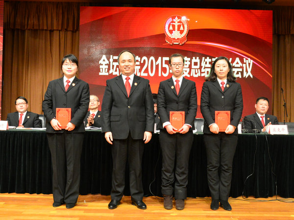 会议由翁生荣副院长主持,庄克平副院长作工作总结,庄严副院长宣读表彰决定,院党组书记、院长宋文良作重要讲话,并亲自为我院2015年度涌现出来的办案、调解等各类能手和先进集体个人颁发荣誉证书,全院干警参加了会议。