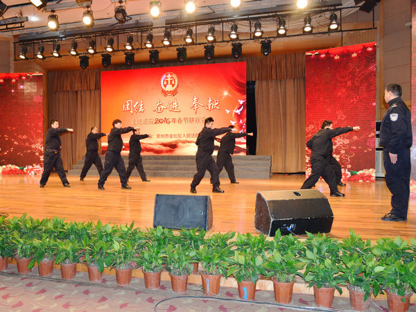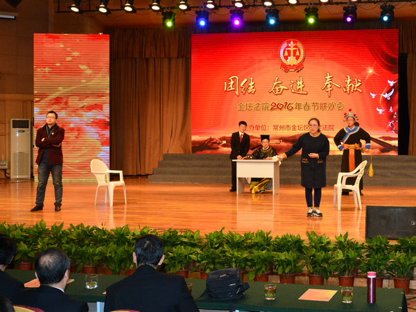 表彰大会结束后,全院干警共同观看参加自编自演的迎春联欢会。