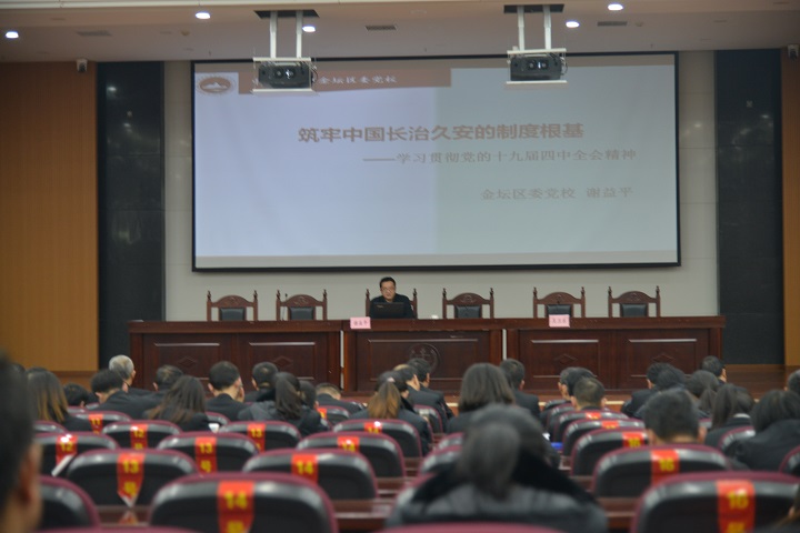 此次讲座邀请金坛区委党校教育科科长谢益平作全会精神解读讲座,我院全体干警参加学习。