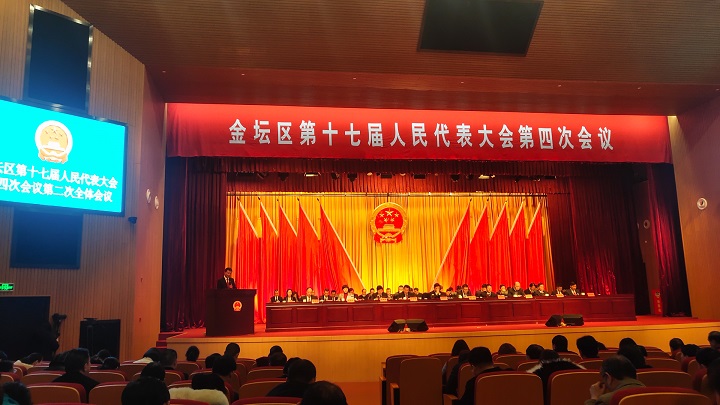 2020年1月4日,在金坛区第十七届人民代表大会第四次会议第二次全体会议上,金坛法院党组书记、代院长于立峰向大会报告法院工作。