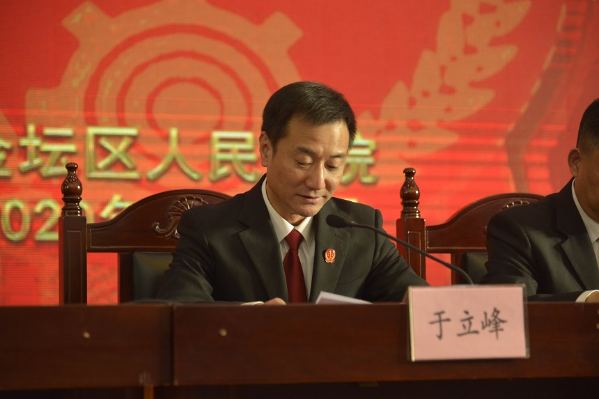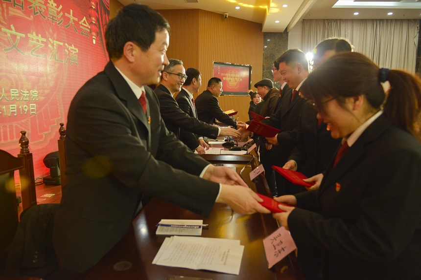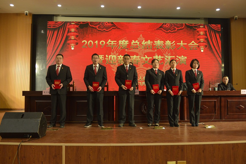院党组书记、院长于立峰作2019年度法院工作总结,并向全院干警致以新年的问候。 院党组成员、副院长、政治处主任吴卫东宣读2019年度优秀党员和优秀党务工作者的表彰决定。