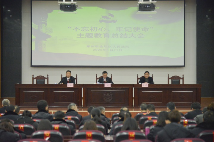 2020年1月21日下午,金坛法院召开了“不忘初心、牢记使命”主题教育总结大会,全体干警参加会议。院党组副书记、副院长庄克平主持会议,并宣读大会议程。