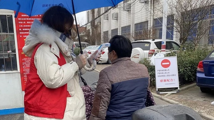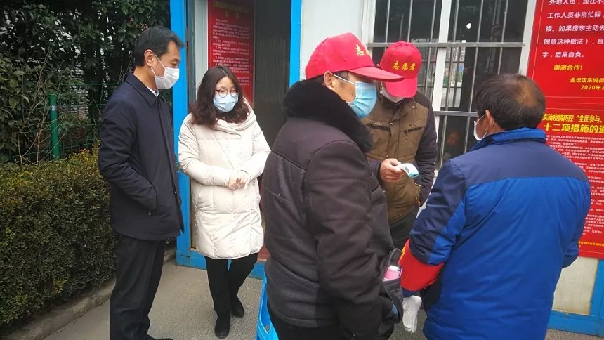 金坛法院党员义工志愿者们联合社区工作人员严格把控体温测量、进出人员规范管理、人员车辆登记、宣传资料发放等多项流程,全力实现“不漏一车、不漏一人”的防控目标,组织动员群众,让党旗高高飘扬在战斗一线。