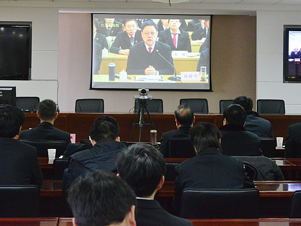 2016年2月29日上午10点,我院中层以上干部、纪检监察部门全体成员在609会议参加了全国法院党风廉政建设和反腐败工作视频会议。