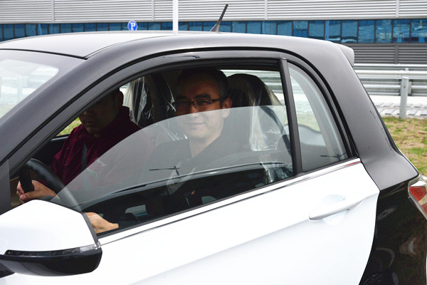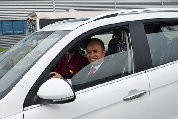 在众泰集团董事长吴建中的引领下,宋院长一行参观了现代化汽车制造车间,并亲自登车试驾。