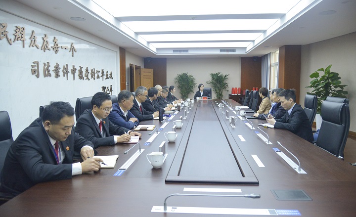 11月17日下午,市中院党组书记、院长马荣带领市中院党组成员、政治部主任张立群,政治部副主任朱志贤,办公室主任翁学超一行至我院调研指导司法辅助事务外包工作。我院党组书记、院长于立峰及其他领导班子成员陪同调研。
