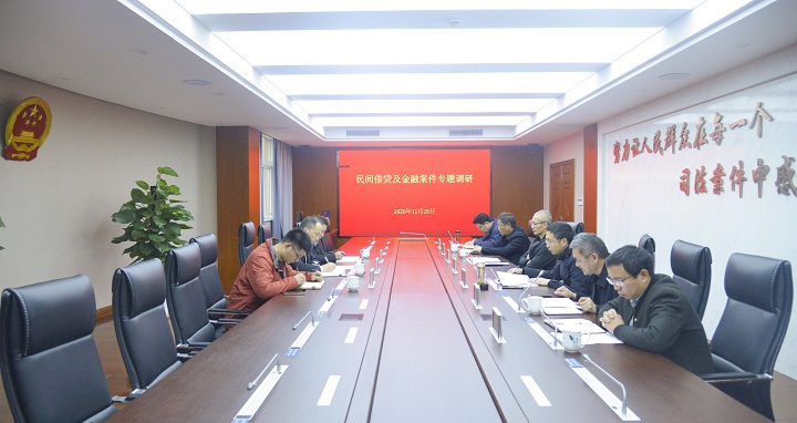 为统一办案标准、解决审判疑难问题,进一步提升审判质效,11月26日上午,市中院副院长高玉华、民五庭庭长王文俊一行三人来我院专题调研民间借贷及金融案件,并开展座谈。我院党组成员、副院长胡哲,党组成员、审判委员会专职委员戴杜平等相关人员参加座谈。