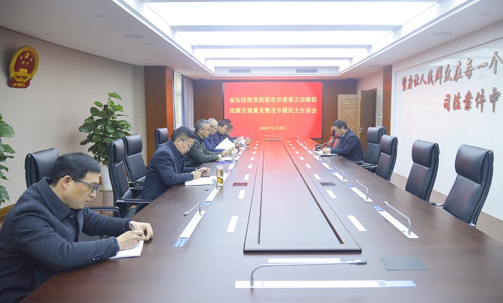 11月28日下午,金坛法院党组召开落实市委第五巡察组巡察反馈意见整改专题民主生活会。院党组书记、院长于立峰出席并主持会议,全体班子成员参加会议。